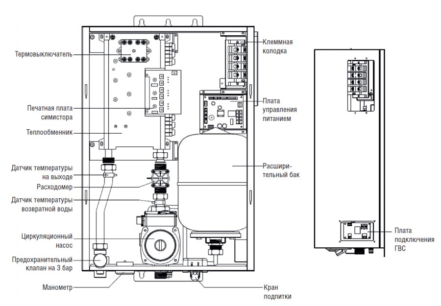 • Имеет полный комплект оборудования, циркуляционный насос и расширительный бак.
