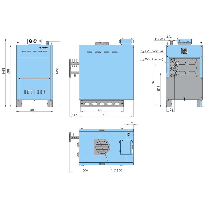 Котел RSA 80Э имеет открытую топку и оборудован атмосферной горелкой. Теплообменник производится на Заводе Rossen, выполнен из оребренных труб с увеличенной поверхностью теплоотдачи.