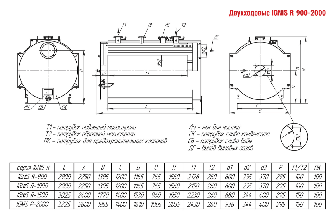 Технические характеристики водогрейного двухходового котла ARCUS IGNIS R-2000