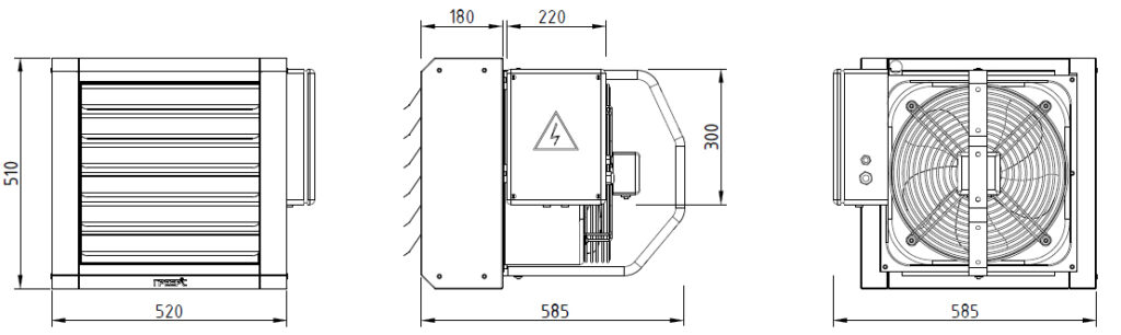 Габариты тепловентилятора ГРЕЕРС серии ЕС-12