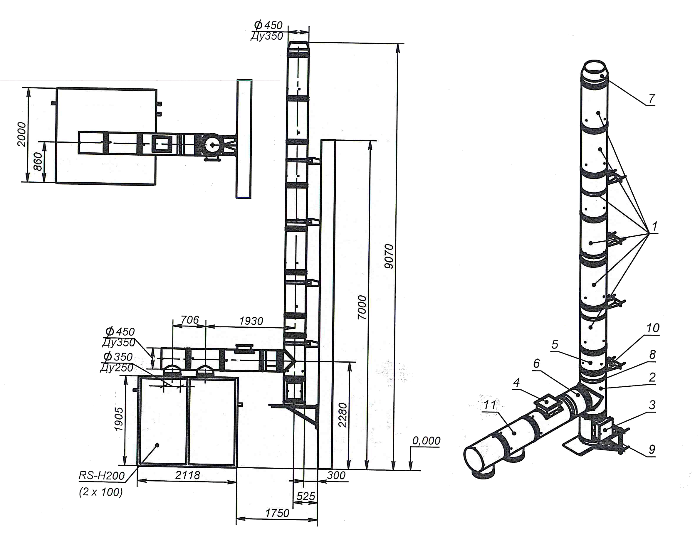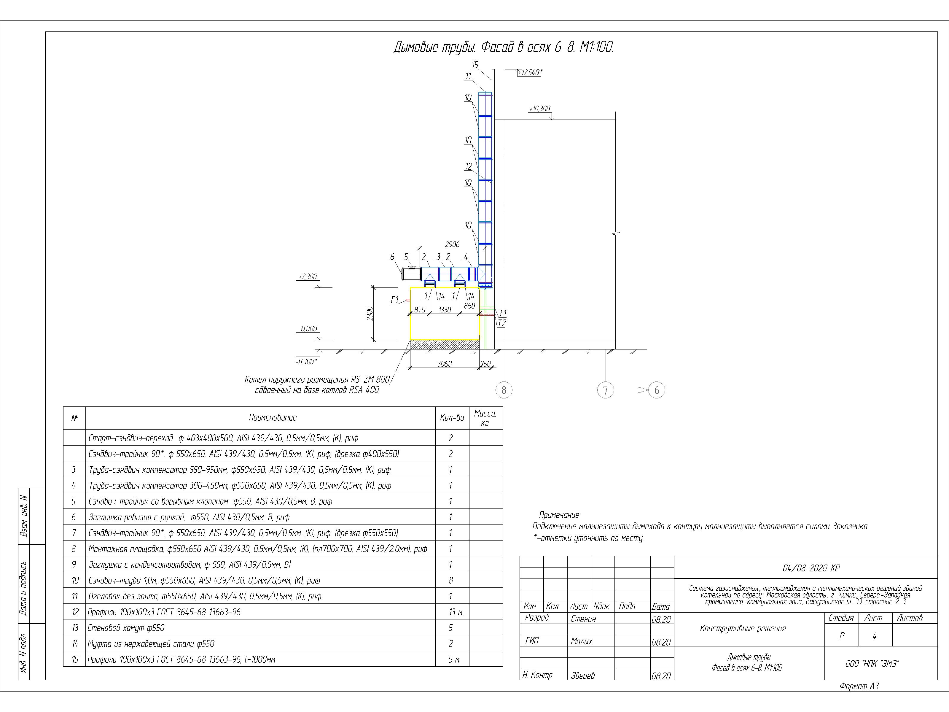 Завод Rossen уже прекратил выпуск сперва дымоходов, а затем и КНР, но их техническими решениями, как «законодателей моды», инженеры по всей стране пользуются по сей день. Один из примеров представлен на чертеже ниже. Но оно заведомо дороже нашего при равной высоте дымохода.