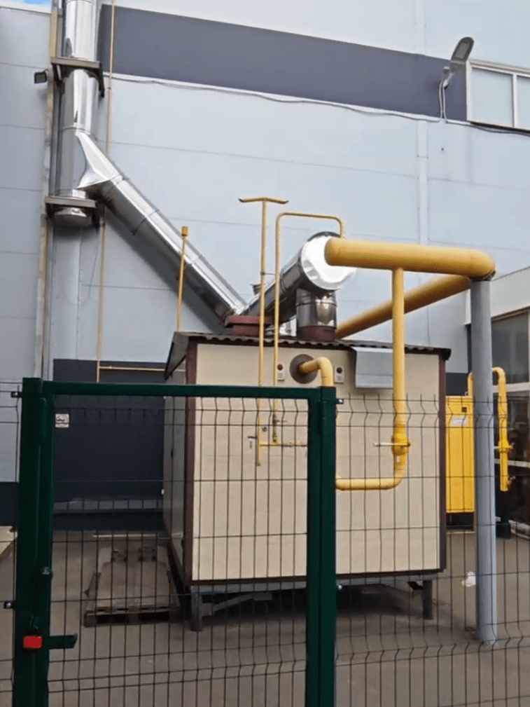 Установка котла наружного размещения RS-ZM 1000 мощностью 1 МВт с ограждением Установка уличного газового котла булат на стене частного дома