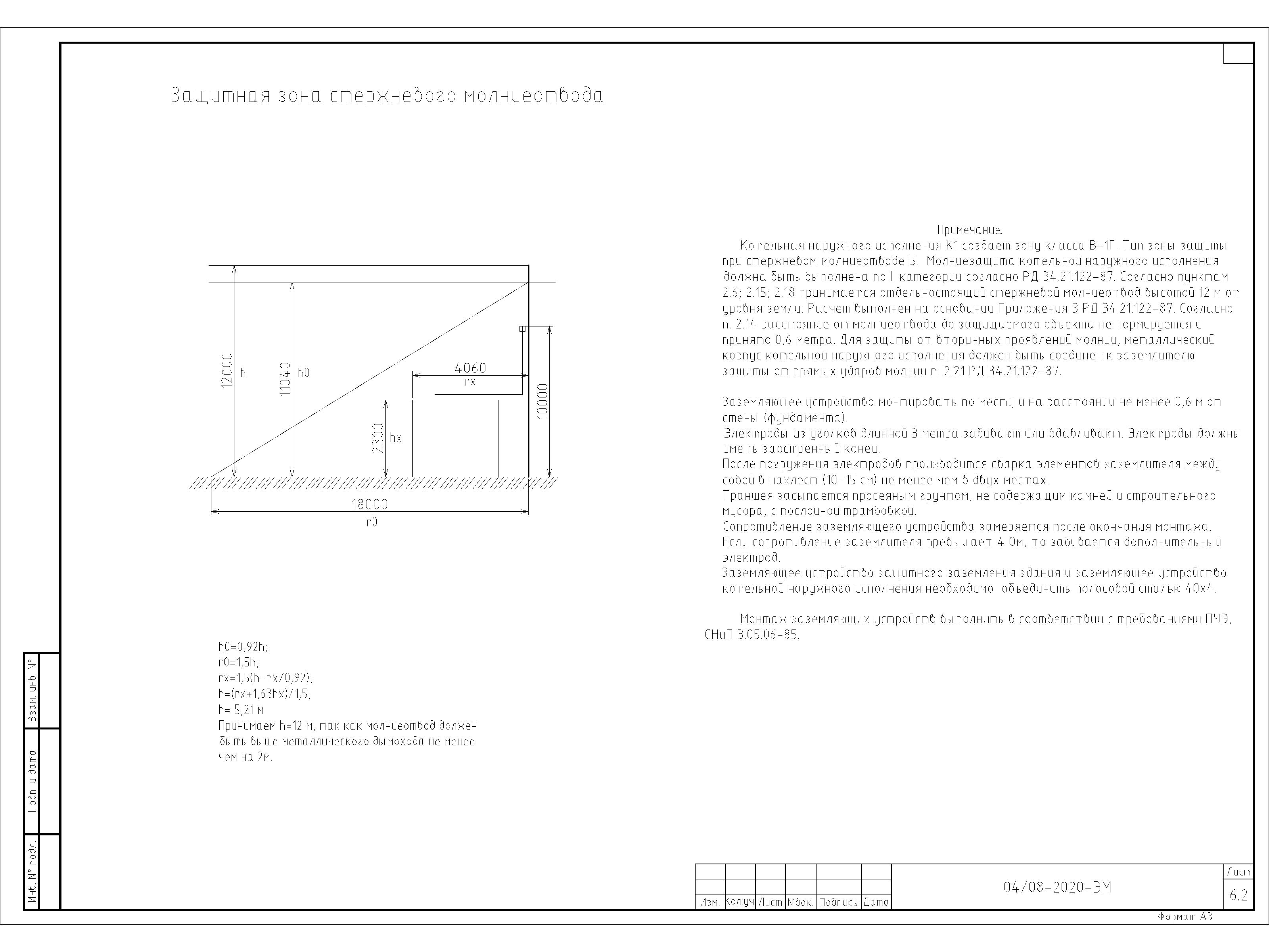 Молниезащита и заземление наружного котла Зона защиты стержневого молниеотвода КНР