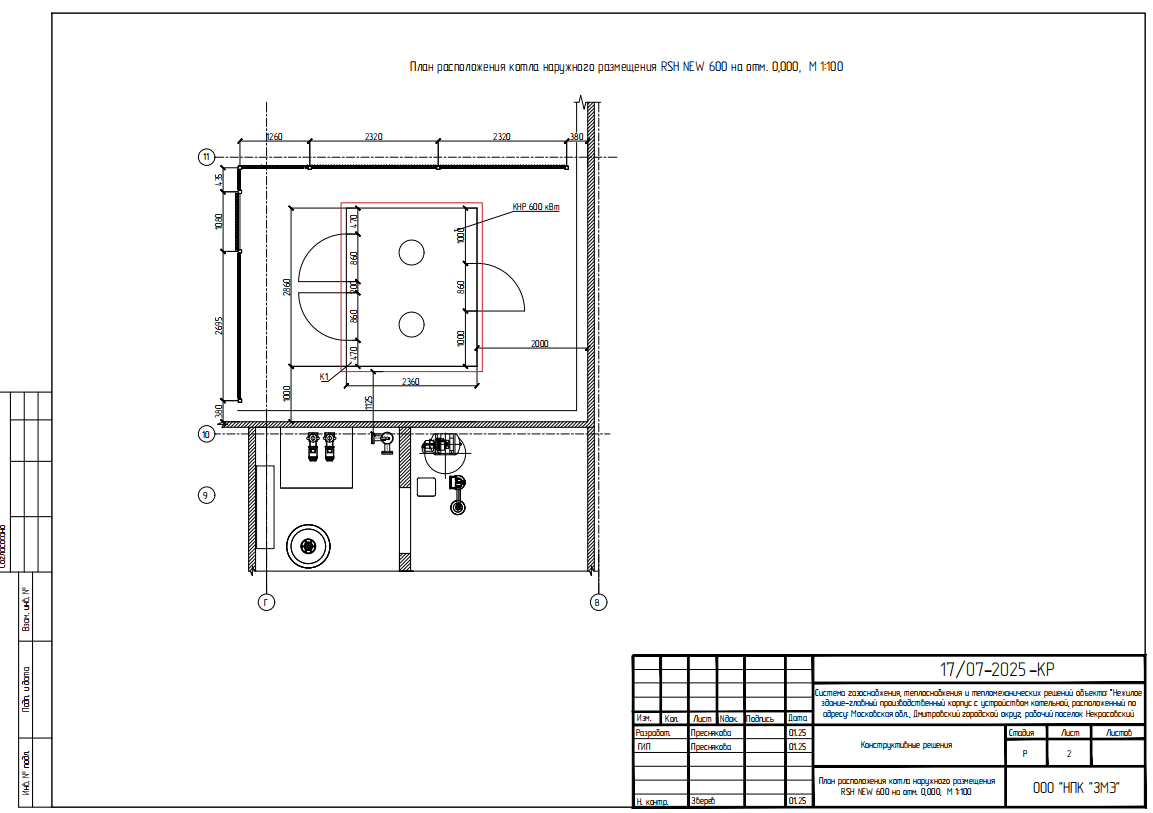 • Стоимость проекта котла наружного размещения